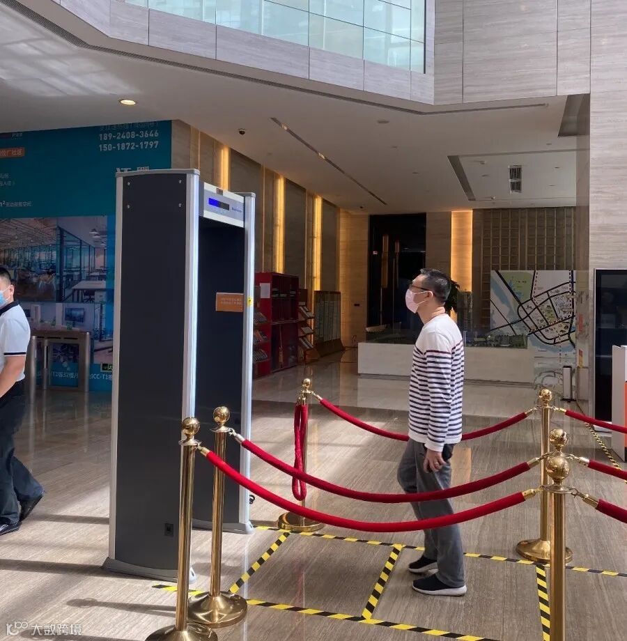 有了高科技设备,让物业人员松了一口气。“这个设备将红外测温与通过式金属探测安检门融合,测温快且准,只要站在指定位置测一下,一旦温度超过设定温度37.2度,测温设备会立即发出识别警告。”物业服务中心工作人员一边说,一边拿出一杯热水进行演示。热水一靠近测温仪,机器迅速发出“滴滴滴”的警报声。“这样就可以避免上班员工长时间等待造成潜在的交叉感染。”