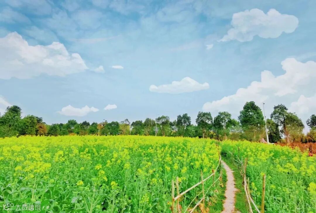 阳春三月,正是油菜花盛开的季节,眺望远处,万亩花海尽收眼底,绽放的黄色花朵层层叠叠,在山水之间随风飘摇,满眼尽是生机盎然的希望。