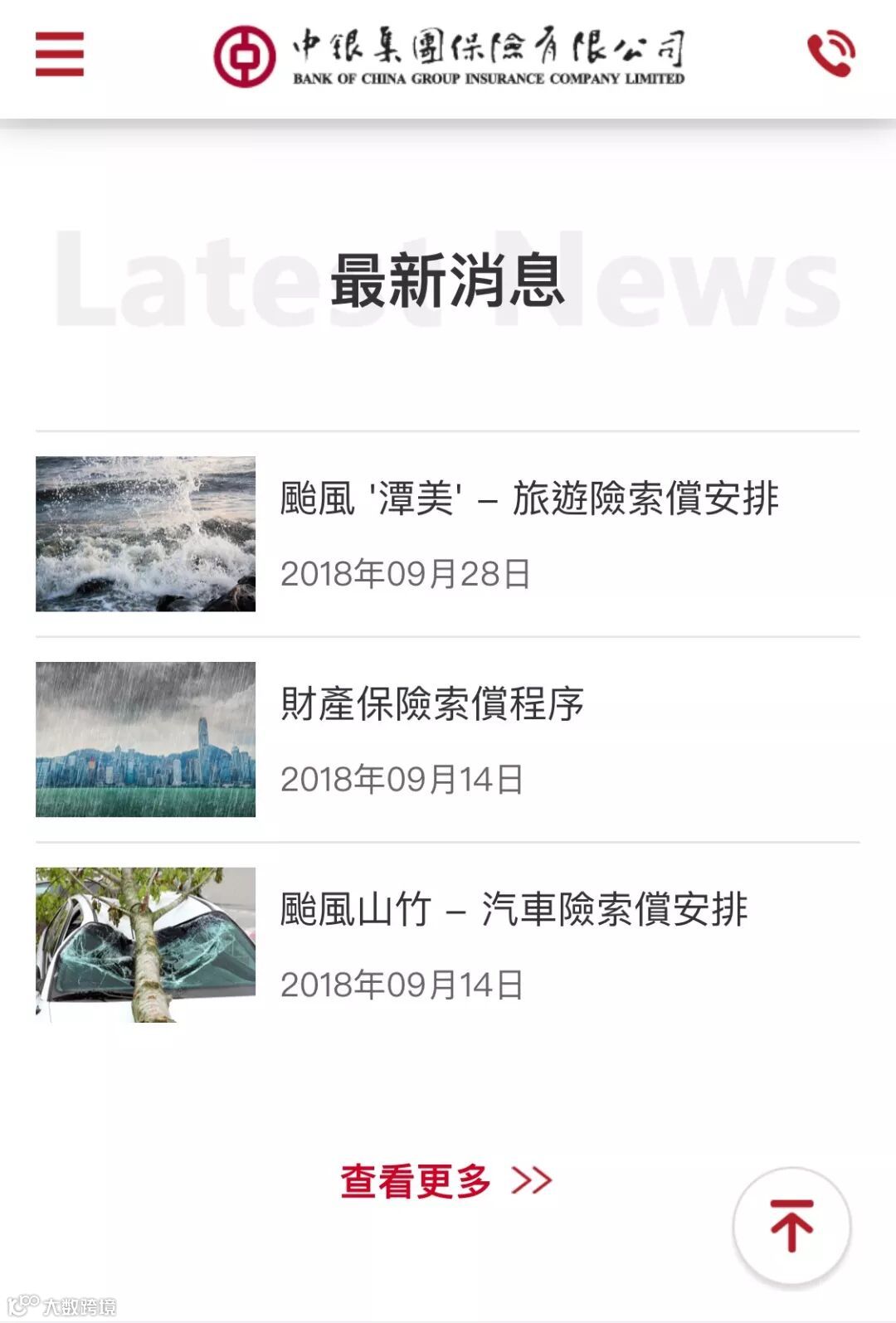 「最新消息」為本公司提供的最新客戶資訊,包括近期推廣優惠活動、天氣變化引致的索償安排、條款變更等。