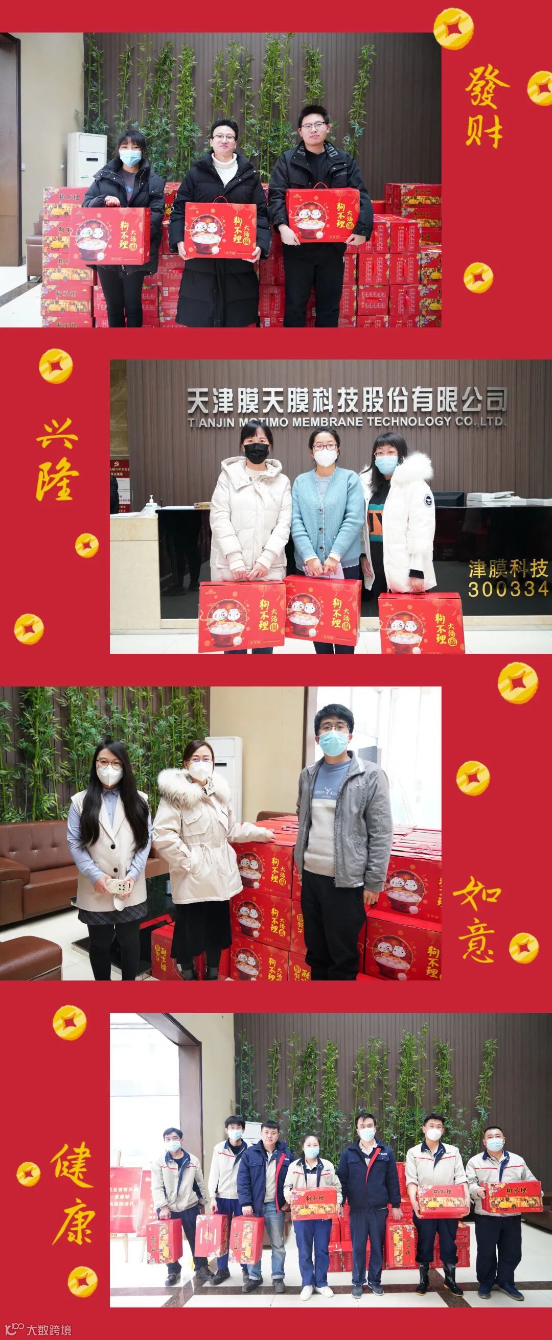 为切实落实好春节慰问工作,津膜科技工会精心组织、周密筹划,为每位员工发放了狗不理面食大礼盒和汤圆大礼盒,传达公司工会的体贴和关怀,鼓励员工以昂扬的斗志开启2023年工作的新征程。