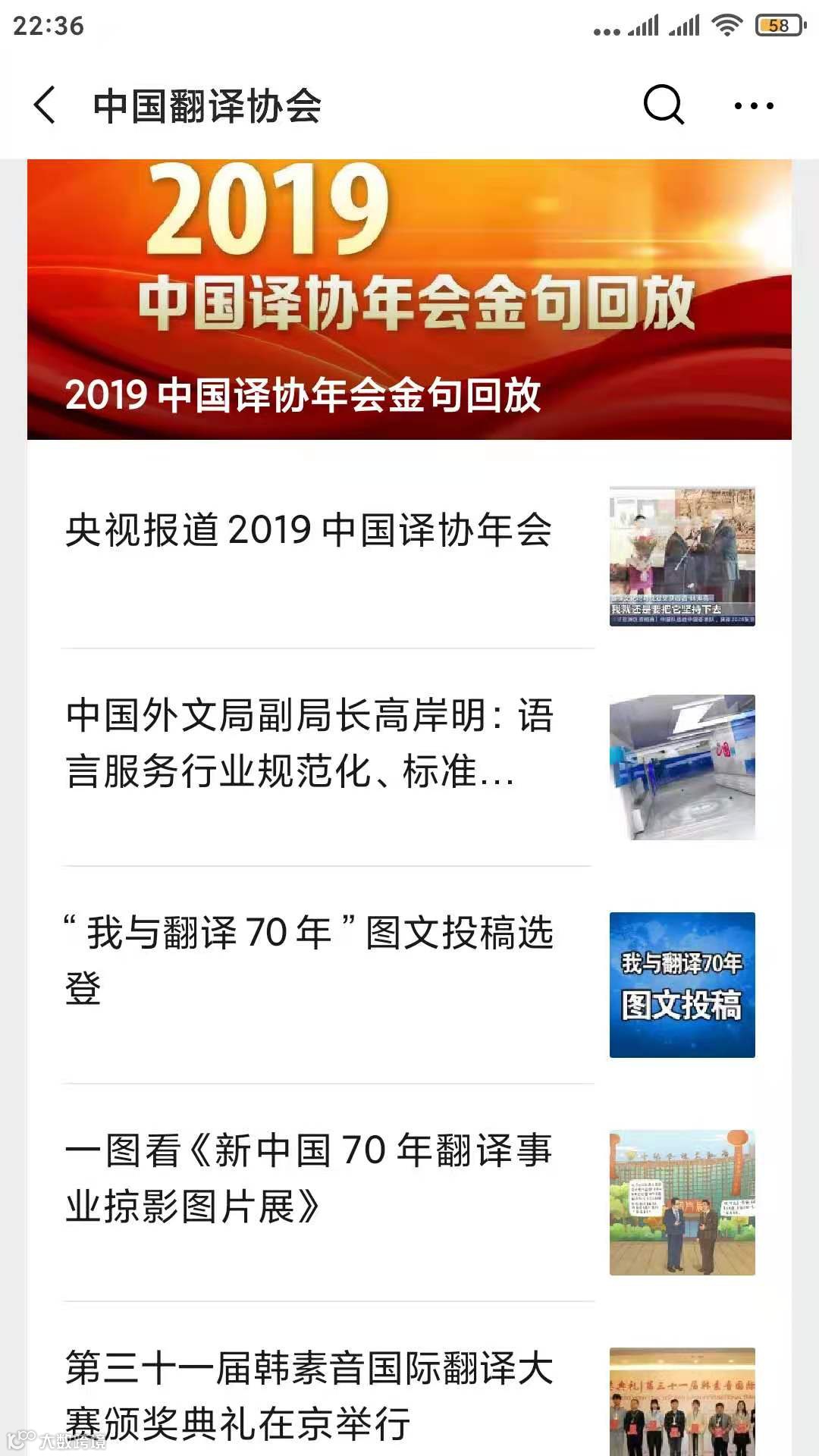 2019年11月,他受中国翻译协会邀请,参加了在北京举行的新中国翻译事业70年论坛暨2019中国翻译协会年会,投稿被入选在由中国外文局在微信公众号上举办的“我与翻译70年”图文投稿选登活动中。