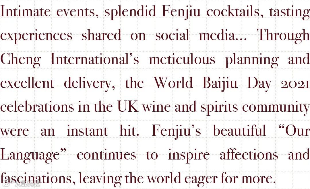 The 2021 World Baijiu Day marked another new attempt of Cheng International’s creative Baijiu marketing in the UK. More wonders are yet to come.