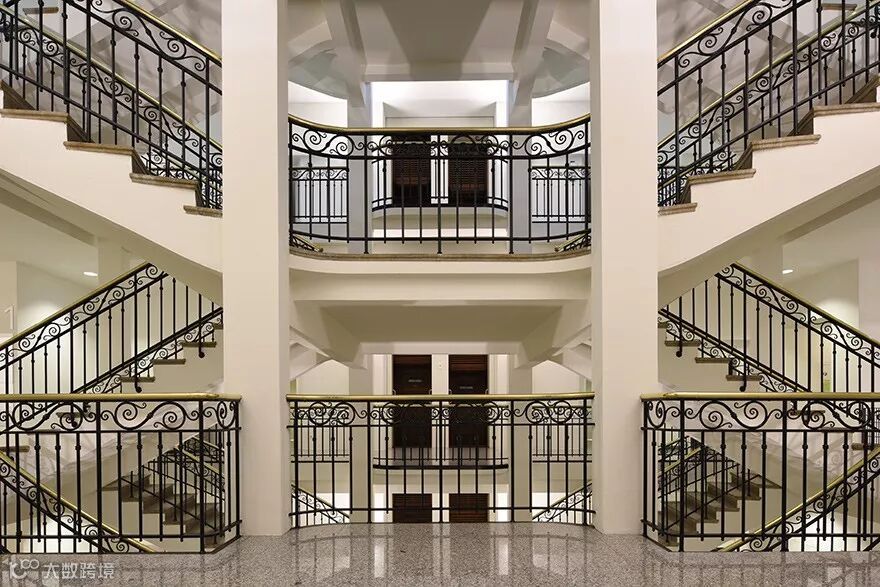 如果希望表现建筑中的透视效果或较大的空间感受,也可以根据现场环境寻找到合适的拍摄角度,梳理线条关系,让其出现带有节奏性的韵律感,这将可以更好地体现建筑的优美。