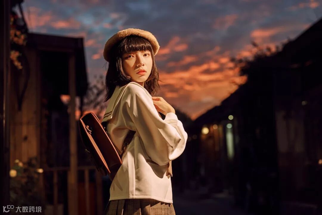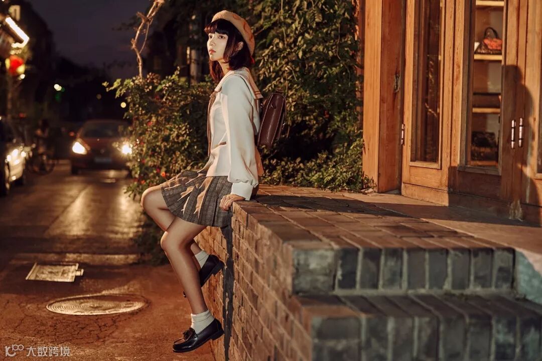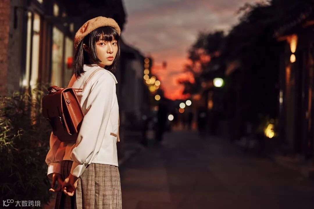 晚霞很快没有了,这时商铺灯光开始点亮,环境明显的暗了下来,这时使用闪光灯很容易把背景拍的黑成一团,所以为了保证背景的亮度,我把感光度提升到800,这样就平衡了人物和背景的光比,拍出来会自然一点。在这里我使用一支F60RM调到1/8输出当侧逆光,另一只灯1/32输出提亮人脸的暗部,获得立体的光效。