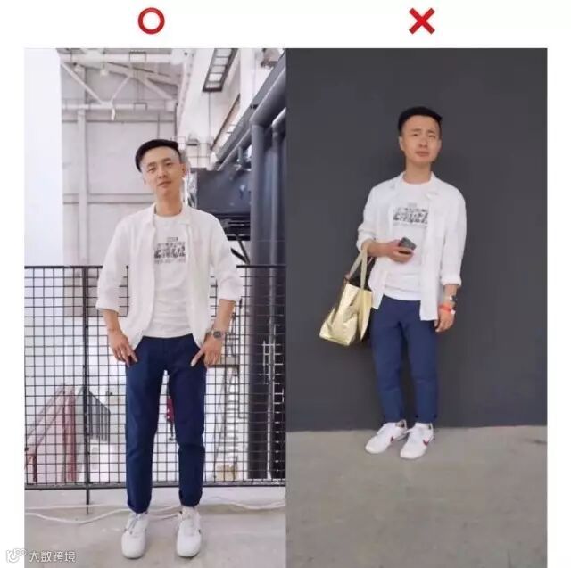 脚尖和膝盖都要面向拍照的人,身体要向前