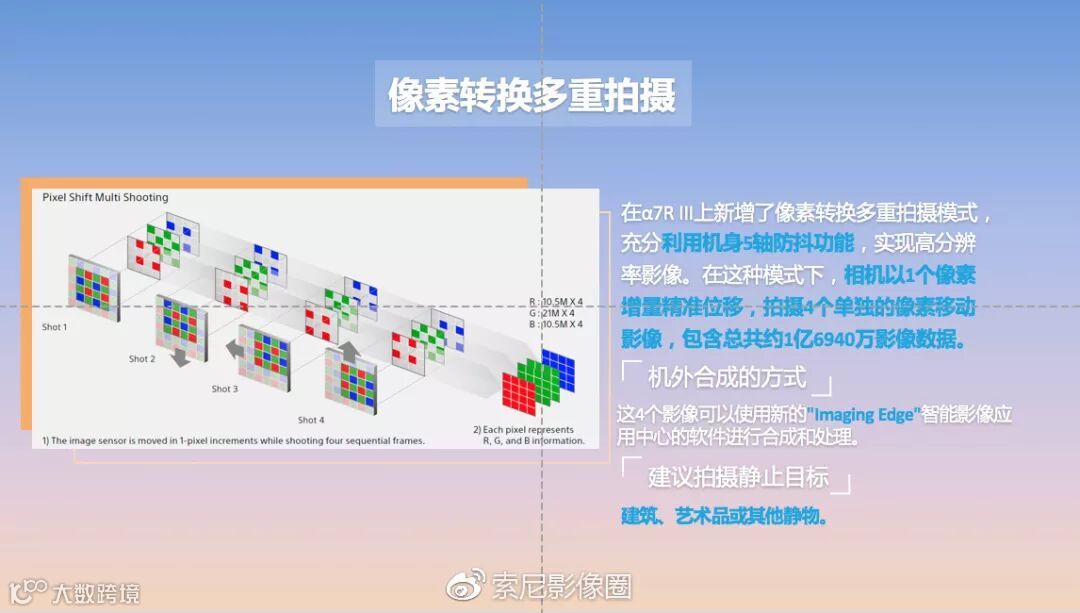 使用像素转换多重拍摄功能拍摄时,携带三脚架和快门线,选择间隔1秒,如果风很大还需要在三脚架上挂好配重哦。是不是又学会了一招呢?快拿起手中的A7R3一起去追逐极致光影吧。