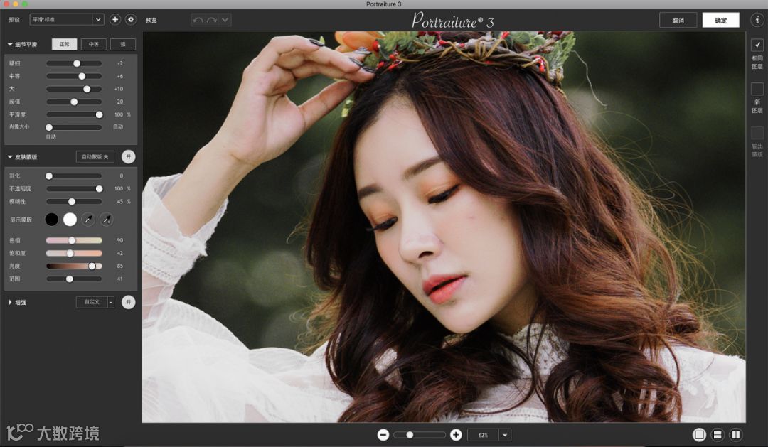 磨皮滤镜用这一款,portraiture。特别高效,效果也还不错。
