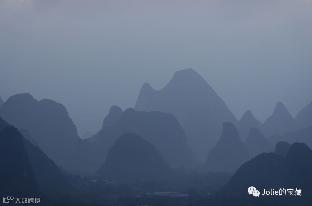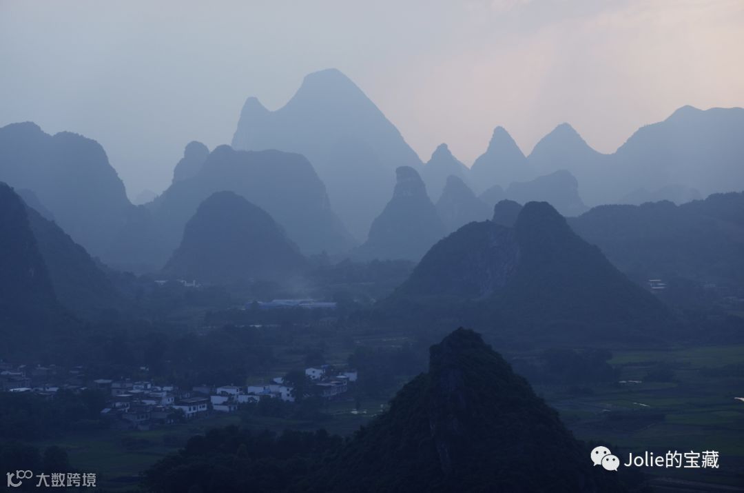阴天的冷色调更是与阳朔的山水描绘出自然的水墨画。