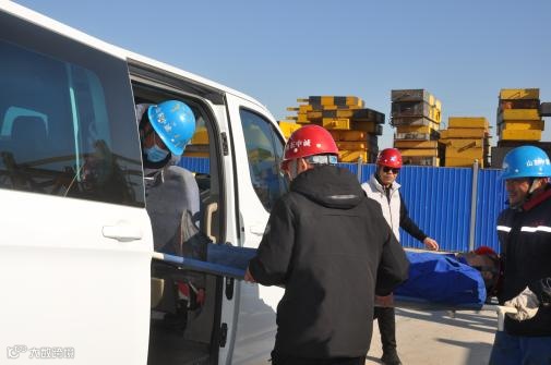 隐患排查小组、应急救援小组迅速携带担架、急救箱等专业救援设备奔赴现场。隐患排查小组对事故现场进行了仔细排查,确认现场安全无其他隐患后和医疗救护人员对 “伤者” 进行了细致的伤情检查与初步处理,随后,救援人员小心翼翼地将 “伤者” 抬上担架,按照预定的安全路线送往临时医疗救护点作进一步观察与救治,整个高处坠落应急救援过程紧张有序,各环节衔接紧密。演练结束后在集合点针对可能存在的骨折、颅脑损伤等情况,又对相应的固定、包扎和心肺复苏等急救措施进行了讲解。
