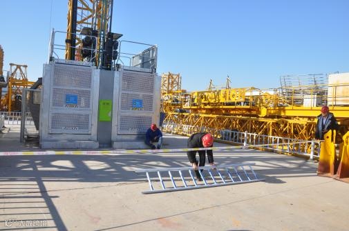 模拟施工现场高处作业的“工人”失足坠落。事故发生后,现场安全员立即对伤员情况进行确认,迅速组织周边人员设置警戒区域,防止无关人员靠近,并向应急指挥中心报告事故详情,包括坠落人员的位置、受伤情况等关键信息。
