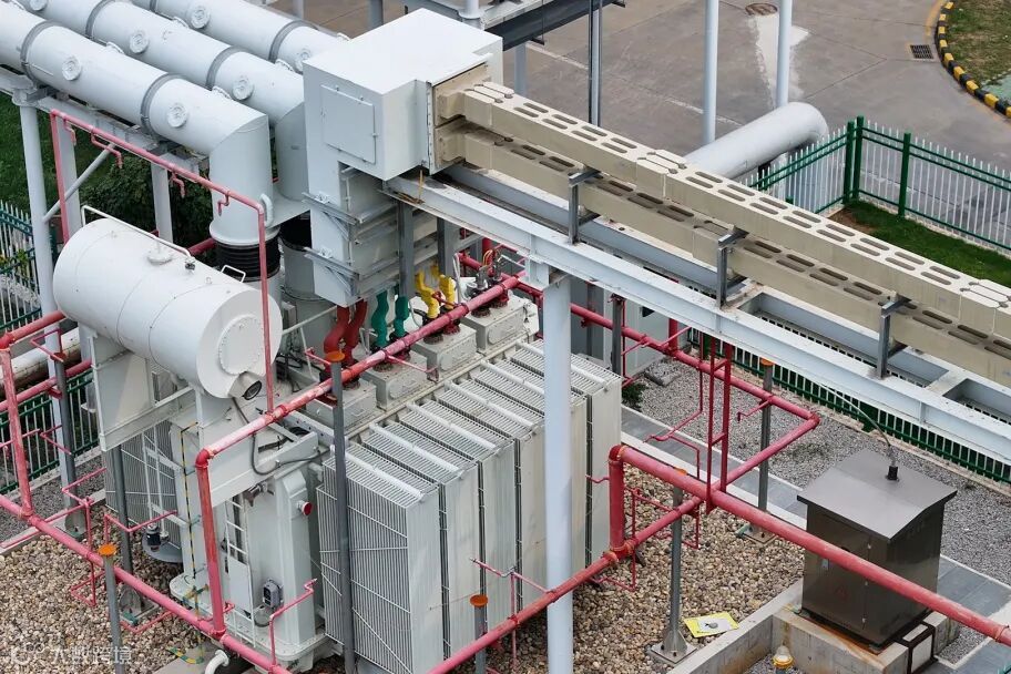 “这里是我们项目的电极锅炉主变压器,从电厂2号发电机组发出的20千伏的电首先经过这台高压变压器降压至10千伏,才能供给电极蒸汽锅炉使用。”公司储能及产品事业部技术总监王骏介绍到。