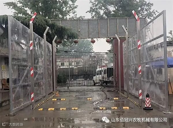 车辆很容易就会携带病源传播媒介,进场前必须要进行严格的消毒和管控,先进行冲洗,车辆表层灰尘,车辆晾干后,使用消毒水喷雾进行消毒,门口设置消毒池,消毒水深度在10cm,以便保证消毒效果。