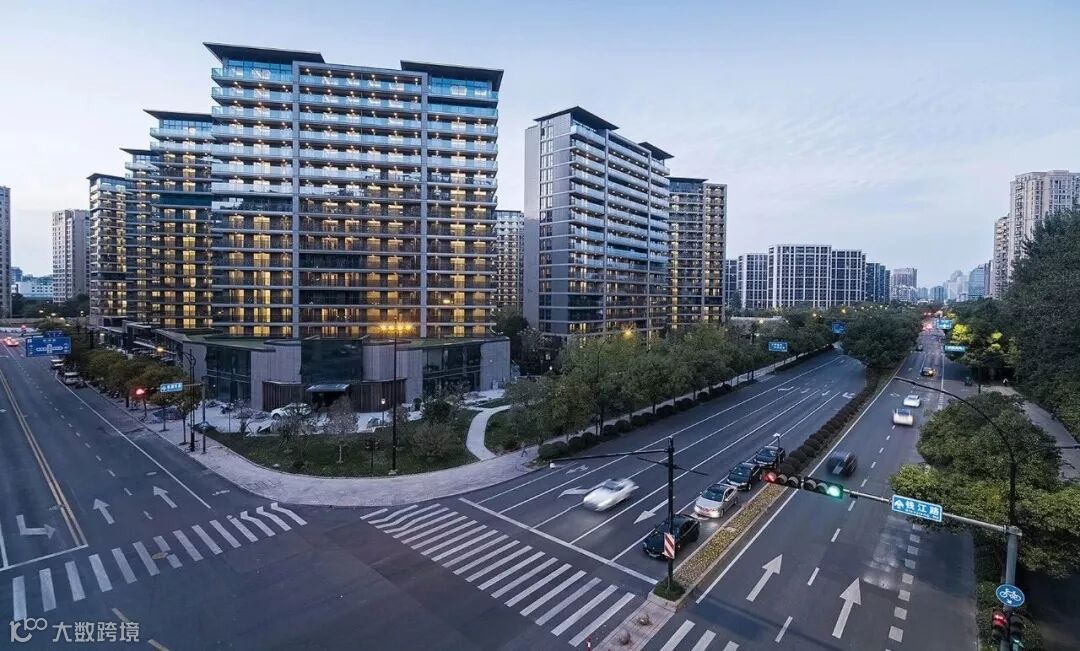 傲立杭州钱江新城的候潮府,作为融创城市府系的代表作,灰蓝色调的“蓝眼睛”石材与大面宽通透玻璃栏板结合,演绎建筑冷而不峻的气质。高级灰的建筑美学获得高净值人群的一致青睐。