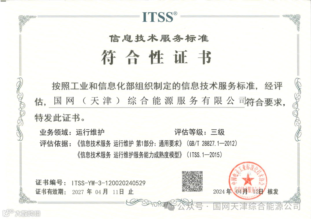 接下来,国网(天津)综合能源服务有限公司将以此为契机,深入优化运维管理体系,加快提升信息技术服务运维能力,不断累积实体化业务实力,稳步提升核心竞争力,为助力企业数字化转型打好基础。