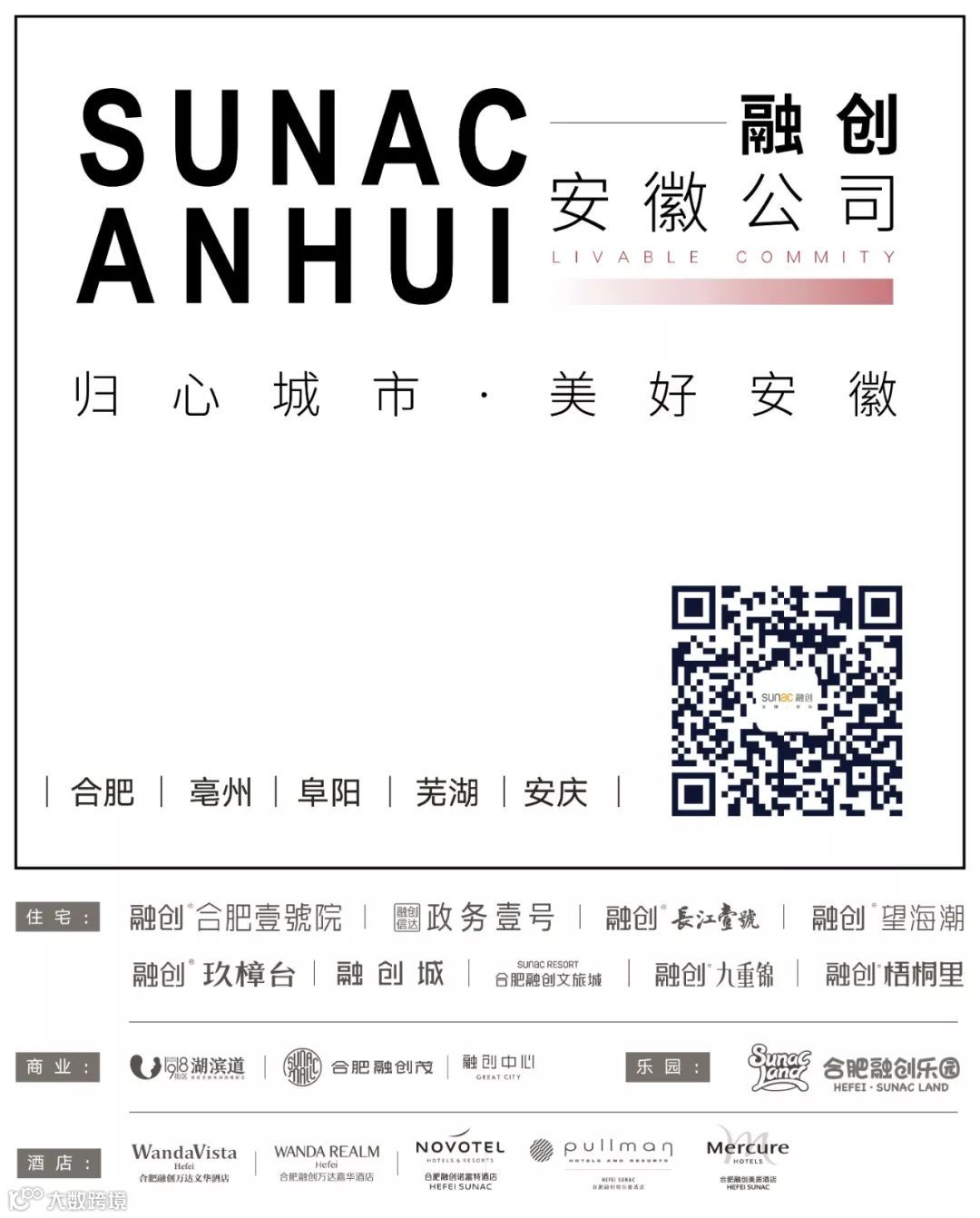 · 本项目推广名为“合肥融创文旅城”,地名办核准名为“万达悦湖苑”;开发公司为:“合肥万达城投资有限公司”;商品房预售证:“20181238";商品房预售证:“20190086";商品房预售证:“20190087";商品房预售证:“20190083";