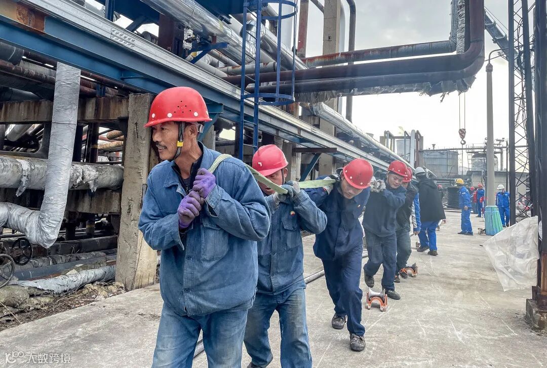 近日,在石油三厂演武油库双电源隐患治理项目高压动力铺设施工现场,数名员工有序排开,他们手握胳膊粗的电缆奋力向前,哨子声声响,口号齐声喊,现场一派繁忙的施工场景。