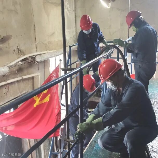 给排水车间党员清理中和间卫生和管架桥上杂物