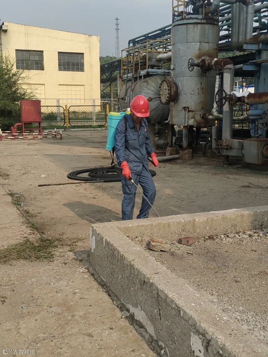 该车间领导班子高度重视此项活动,党支部书记于希才身先士卒,提前一天自费购买了除草剂对车间装置区域内大面积的杂草进行喷洒,为后期杂草的清理提供了有力的保障。