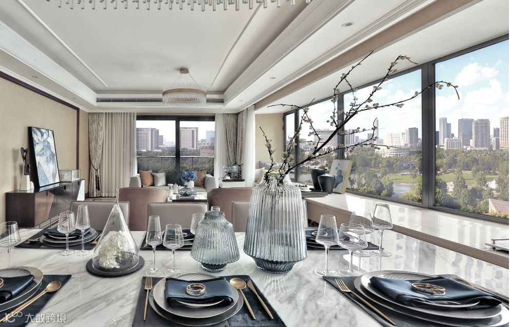 这样的私密社交,在世界高净值圈层中盛行。VIEW 166客餐一体化的奢阔横厅设计无疑是其中国式的表达。