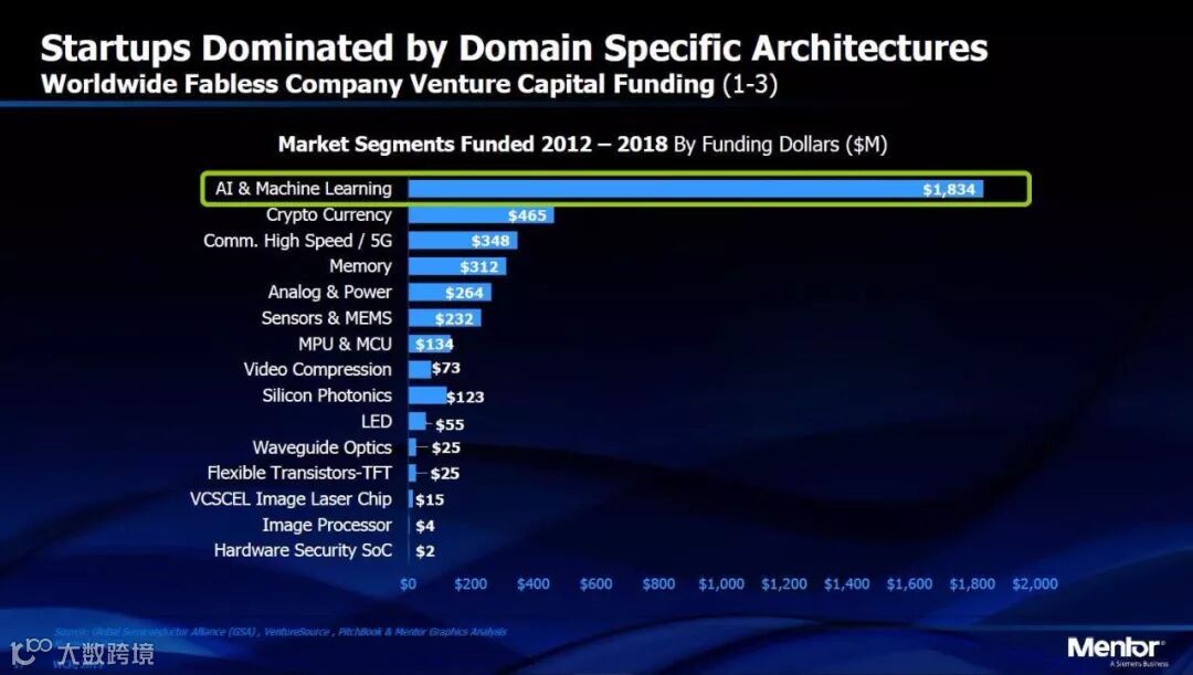 机器翻译(仅供参考):在慕尼黑,西门子事业部Mentor首席执行官Wally Rhines指出,一系列数据显示中国在全球半导体和人工智能创业领域的主导地位日益增强。 他表示,无晶圆厂半导体初创公司的风险资本投资大幅增加,其中大部分资金来自中国,特别是在初期。 随着中国政府对半导体投资的巨大激励,中国在早期投资全球无晶圆厂公司的资金是美国资金的六倍。