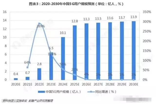 未来随着5G标准的逐步确定、商用步伐的加快以及应用场景的不断丰富,未来5G应用必将渗透到居民生活的方方面面。从用户规模来看,根据艾瑞咨询数据,2021年前后将是中国5G行业的爆发期,而2022年有望成为中国5G用户增长最快的一年;到2024年,中国5G用户规模有望突破10亿人;2025年前后,5G用户速渗透将达到90%以上。