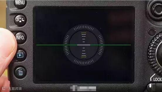 有的相机自带电子水平仪,开启后调整机身处于水平位置,会出现如下图所示的绿线,否则还要继续调整。