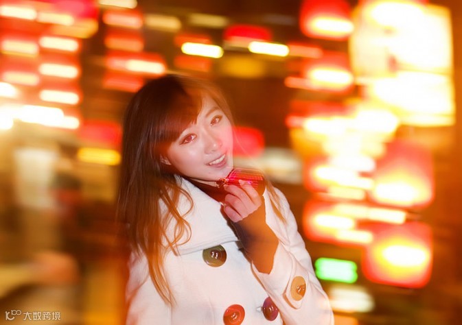 为了营造动感的灯光氛围,在拍摄这组作品时技法上多采用后帘同步闪光配合慢速快门摇机拍摄,瞬间工作的闪光灯“凝固”住了女孩的身影,而背景的灯光通过慢速快门进行虚化产生动感模糊的效果。