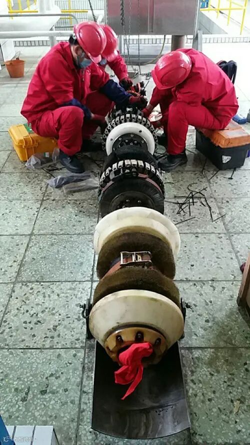 4月22日上午10时,在储运厂长输泵房进行组装调试。检测器长达2.9米,零件繁多,结构复杂,不能有丝毫损伤。为确保管道设备安全及检测器顺利发出,厂领导多次去现场进行指导,该厂干部员工及中油管道检测技术有限公司施工人员等10余人一直坚守现场。大家克服作业空间有限、施工难度大等困难,通力合作,协同作战,一次又一次组装尝试,整整历时十二个小时,于当晚10时5分顺利将其发向储运厂鞍山中间站。为确保检测器能顺利抵达中间站,该厂厂际站员工和施工人员从抚顺一路跟踪,经26个小时的连续跟踪,检测器于4月24日上午4时23分抵达该厂中间站。为了配合施工人员取球和防止检测器发生越站,中间站员工在半夜时就早早做好准备,在球到达一个小时后,将清管器中的柴油成功放空。取球时,由于该检测器重达460公斤左右,加上管道内杂质,足足需要七八个人才能拉动。现场人员克服众多困难,相互配合,摆出了运动会上拔河的架势,伴随着“一二拉一二拉”的口号,终于将其成功取出。至此,长输管道检测安全、顺利完成,长输管道开始启泵输油,大线运行恢复正常。