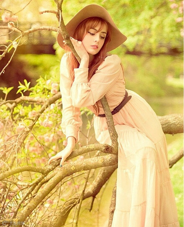 双手胸前自然握,或插衣兜提裙摆,侧脸沉思娴淑来。
