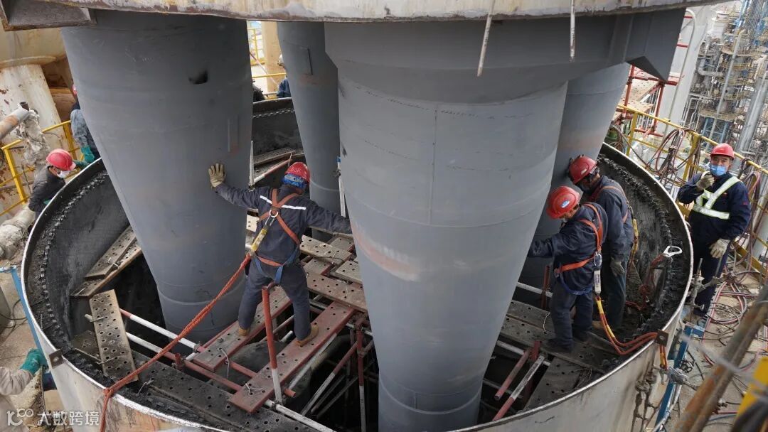 经过20多天的昼夜奋战,工建二公司陆续完成了沉降器油气大管线、沉降器单级旋风分离器、再生器外取热器管束三台大型设备拆除与安装,六次大型吊装作业,累计吊装重量350吨。实现焊接合格率100%,检修项目一次交验合格率100%,重催装置开气一次成功,比计划提前2天。