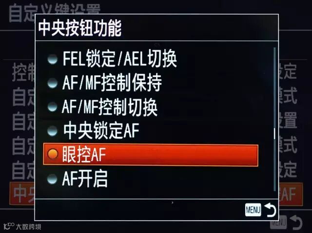 按或方向键选择眼控AF选项,然后按控制拨轮中央按钮确定