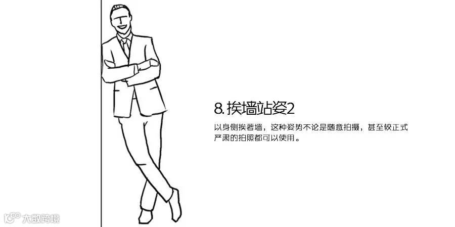 以身侧挨著墙,这种姿势不论是随意拍摄,甚至较正式严肃的拍照都可以使用。