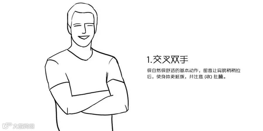 很自然很舒适的基本动作,留意让肩膀稍稍拉后,使身体更挺拔,并注意 (收) 肚腩。