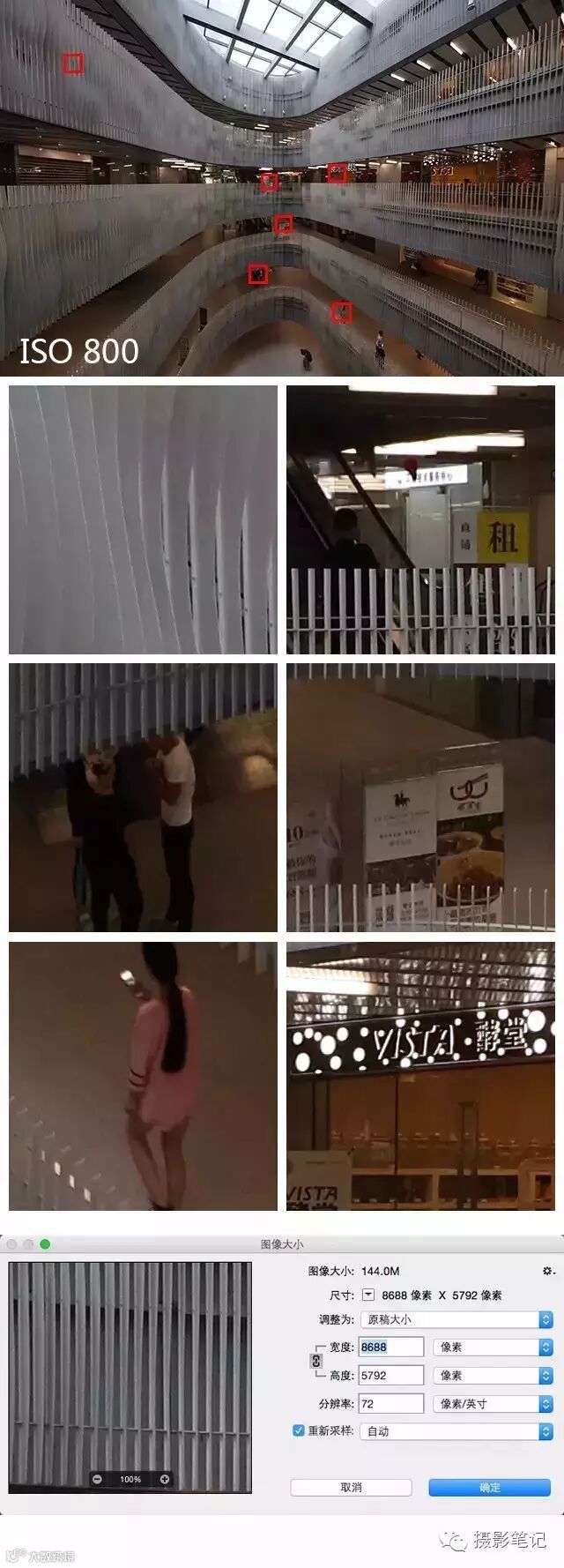 从画面中我们可以看到ISO 400以下,画面非常干净细腻,没有明显变化。