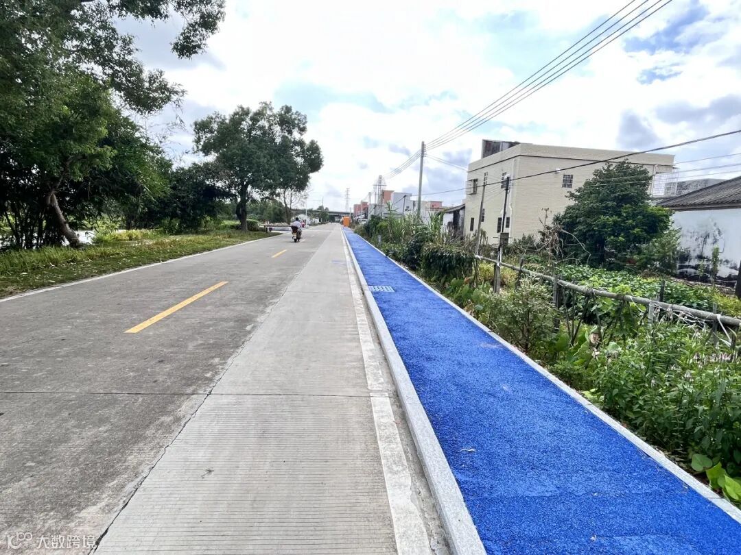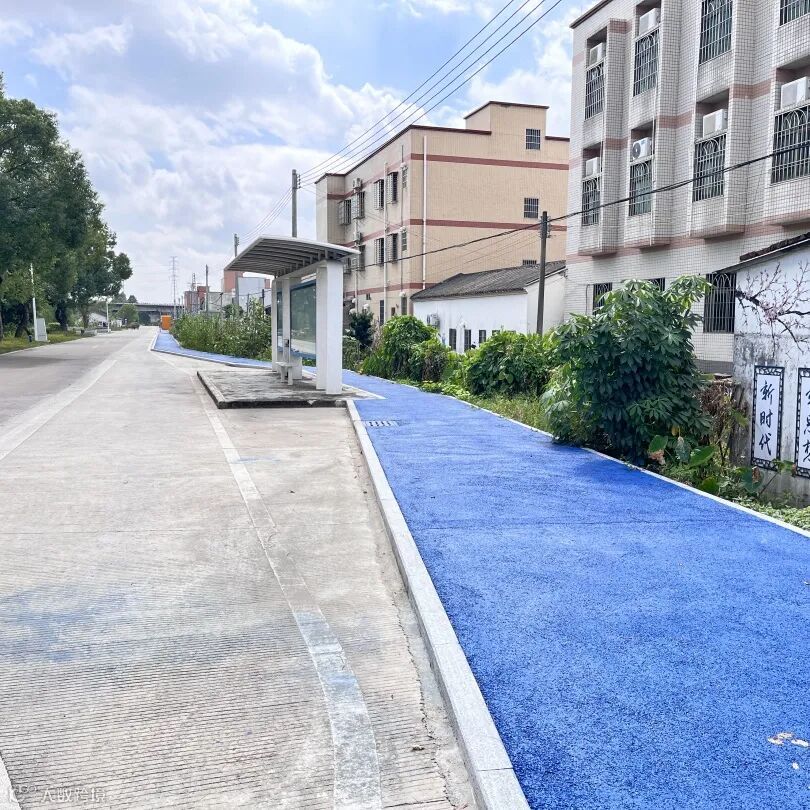 筑平建工承接工程后,制定了“一路一策”的系统提升方案,通过路缘石抬高人行道与车行道进行“软隔离”,实现“人车分流”,提高出行安全性。人行道改造对先对泥路实施硬底化,铺装混凝土约450平方米,并涂刷海蓝色颜料进行上色,一眼望去,一条约260米、宽约1.5米的人行道沿着马路蜿蜒而走。