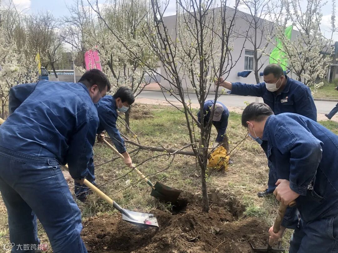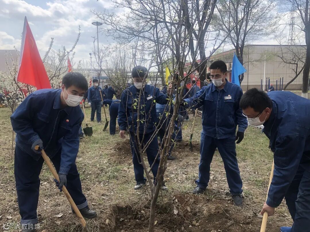 青年团员们通力配合,40余棵李子树和梨树成功“安家落户”,为厂区增添一片新绿。