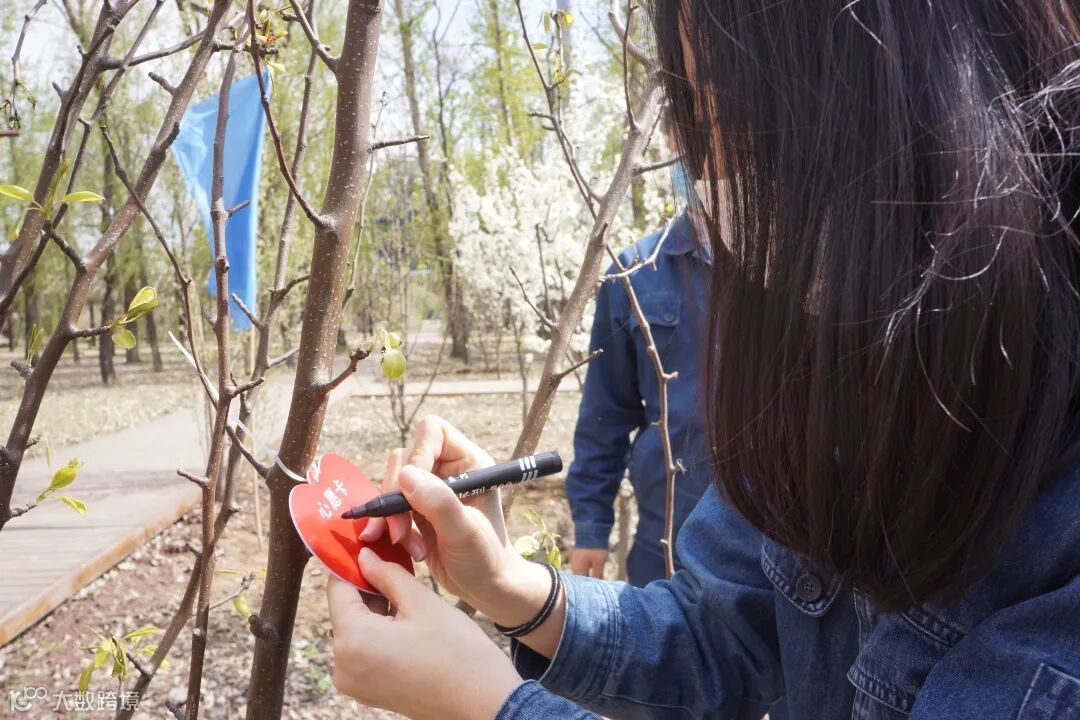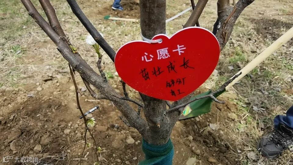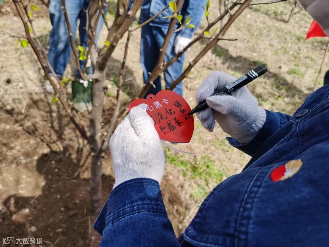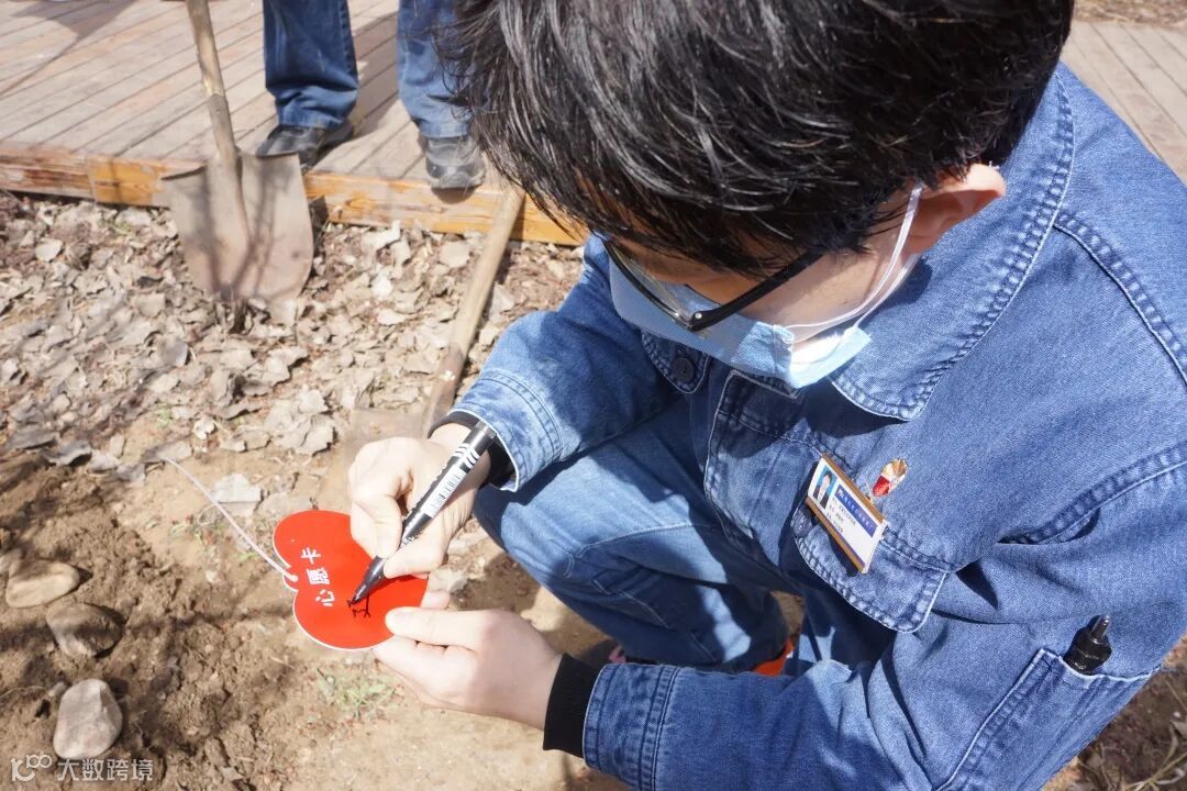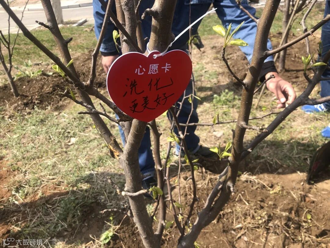 大家纷纷在自己种下的小树苗前合影留念,再添一抹靓色。