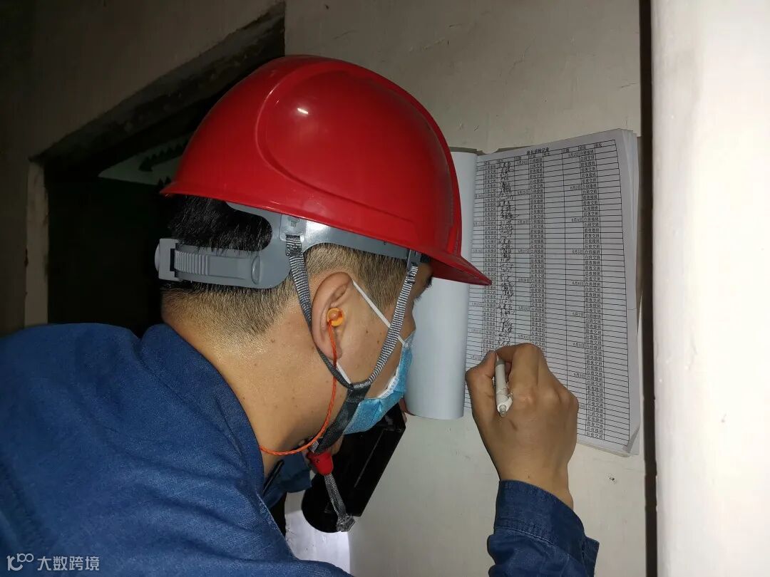 图为班长正在借助听音棒判断汽轮机是否存在异音