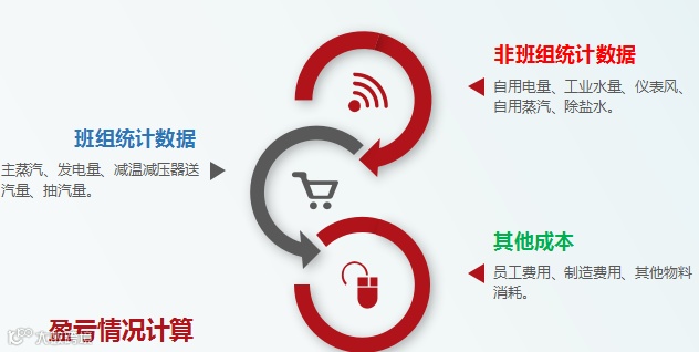 通过生产数据统计表,每班对各累积量进行计算与分析。经计算与分析,准确得出本班实际生产数据,各机组消耗的主蒸汽量、发电量、中低压蒸汽量、动力消耗等。根据各产品单价,计算出投入与产出金额,从而核算出本班实际生产利润情况。