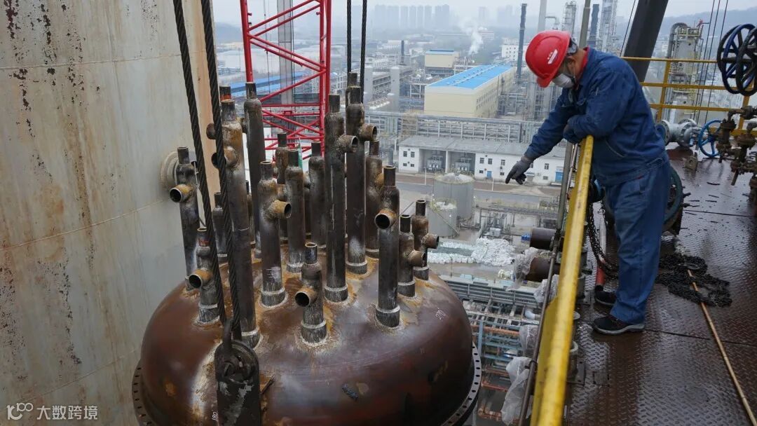 16时25分,一切准备工作就序,随着吊装指挥一声令下,外取热器管束徐徐升起、移位、降落,18时20分,管束平稳落入外取热器中,吊装作业实现一次成功。