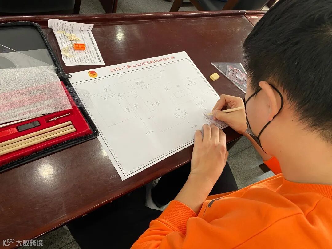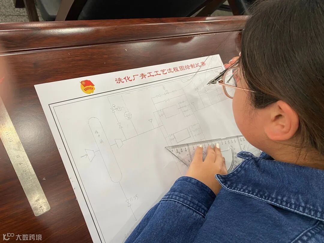 厂团委统一为青工准备了绘图工具,青工们以集中默画的方式认真绘制着装置工艺流程图,铅笔、直尺、圆规、橡皮争先恐后地在绘图纸上舞动着,反应釜、机泵、管线错落有致地呈现出来。他们严谨认真、细心求实、注重细节,将各个仪表位号、工艺参数、控制阀组完美展现,用手中的笔尺迅捷有效地画出一张张高水准的工艺流程图作品。