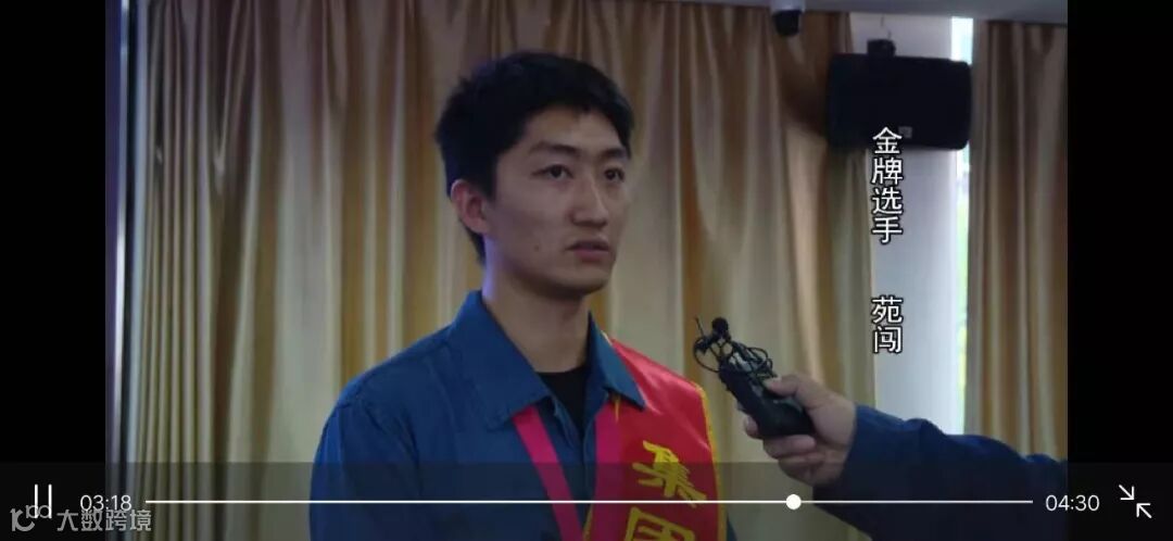 苑闯以总分第一名的成绩获得金牌后,接受记者采访。
