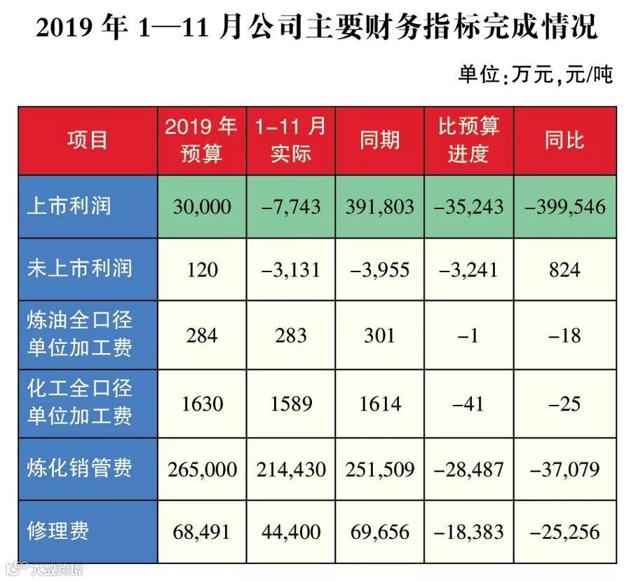今年1—11月,抚顺石化公司加工原油797万吨,同比增加4.3万吨;生产乙烯92.7万吨,同比增产7万吨,实现效益-0.77亿元,同比减利40亿元;其中受成品油价格政策影响亏损7.2亿元,石蜡、石油焦、塑料等产品价格下滑毛利收窄41亿元;高库存跌价损失7.6亿元;装置停工影响0.6亿元;内部挖潜增利14亿元。