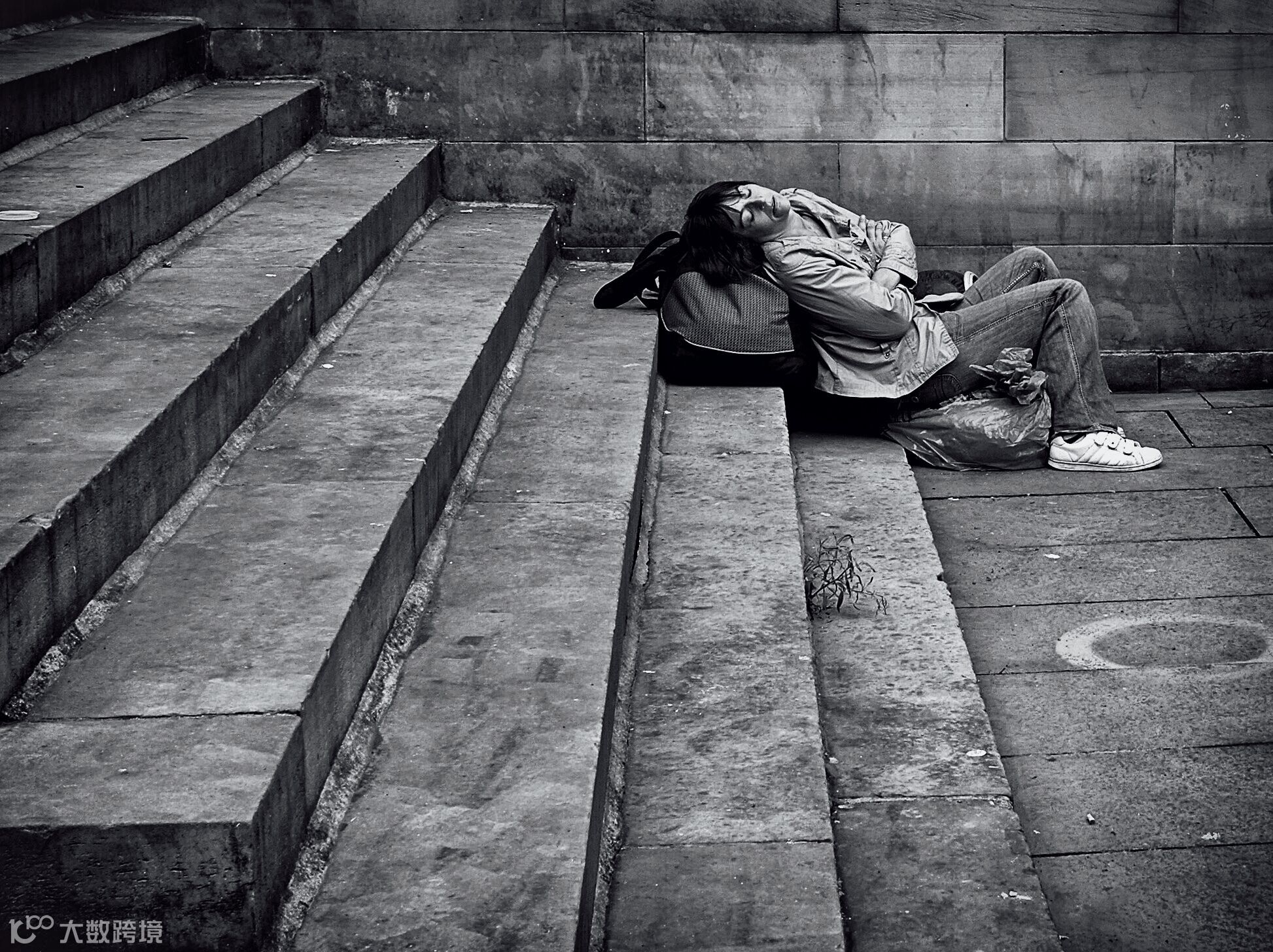 街头摄影意味着画面中并不需要出现一个主要人物,即便有,也不过是场景的一部分。如果你真的害怕和陌生人接触的感觉,不妨后退几步按照风光摄影的方式去思考。使用环境元素去包围人物,或者作为视线的引导。