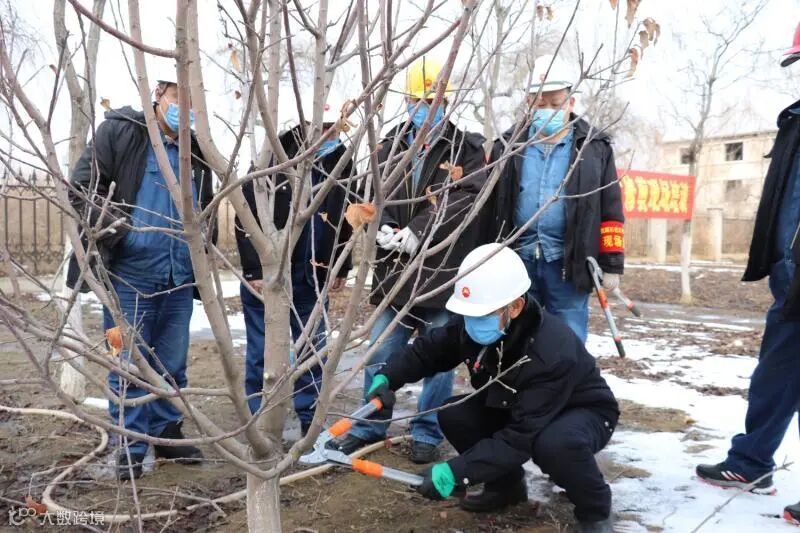 为提高苗木成活率,今年3月11日,化塑厂联合北天绿化公司邀请绿化专家到化塑厂开展春季乔灌木现场修剪培训,对果树修剪进行专业指导。