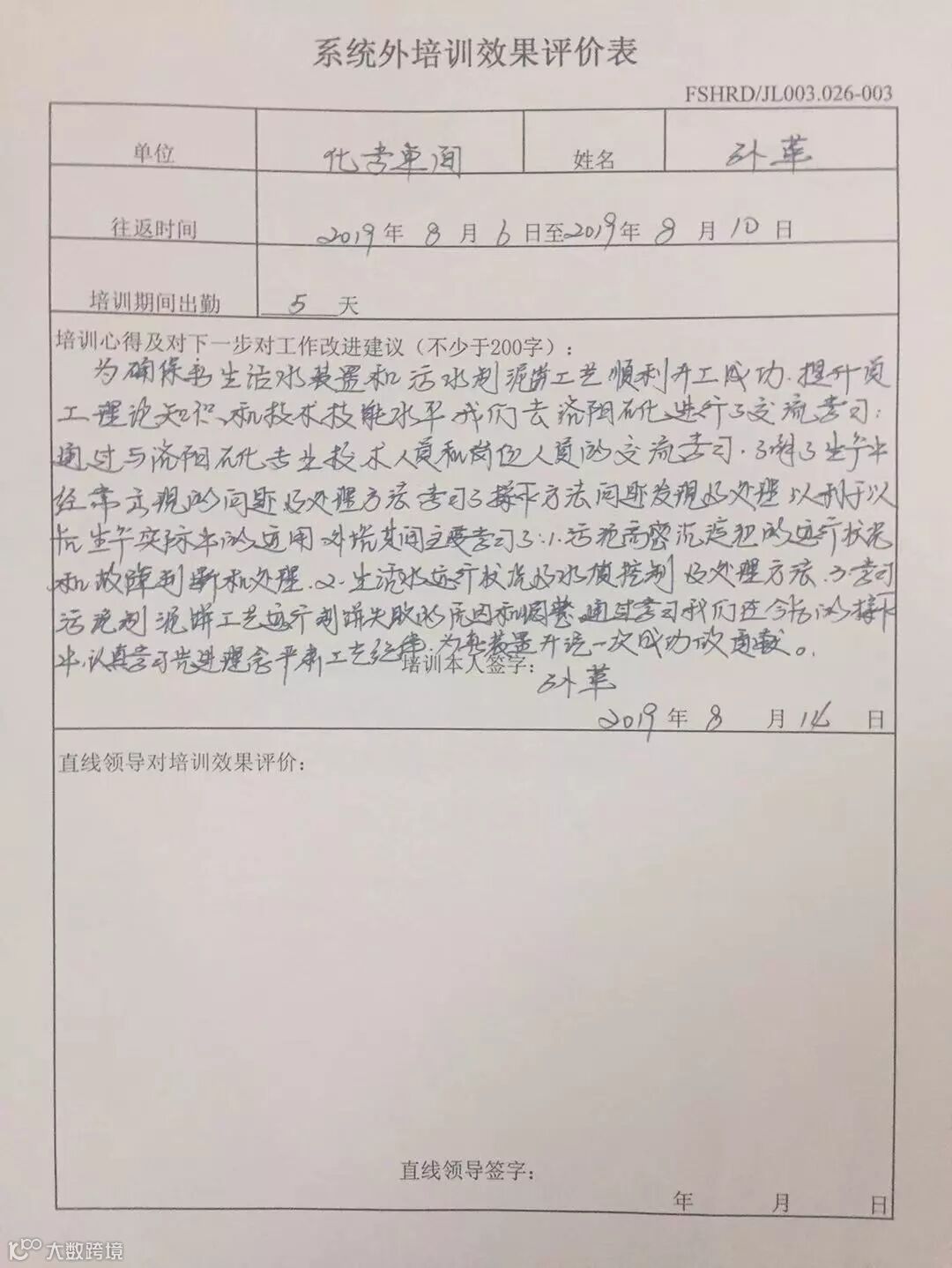 本次外出学习共5天,采取委托培训方式,在洛阳石化公司水务部听取授课讲解,有效提高员工掌握新设备原理和实际操作能力。