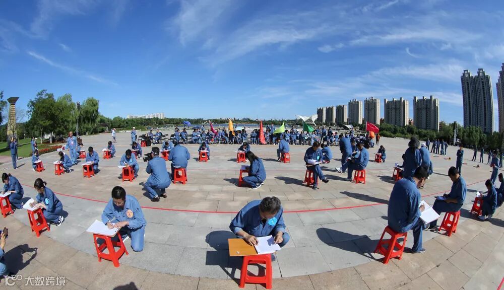 带呼啦圈跑比的是团结与协作力,队员冲向折返点,迅速拾起答题卡,认真审题,谨慎作答。
