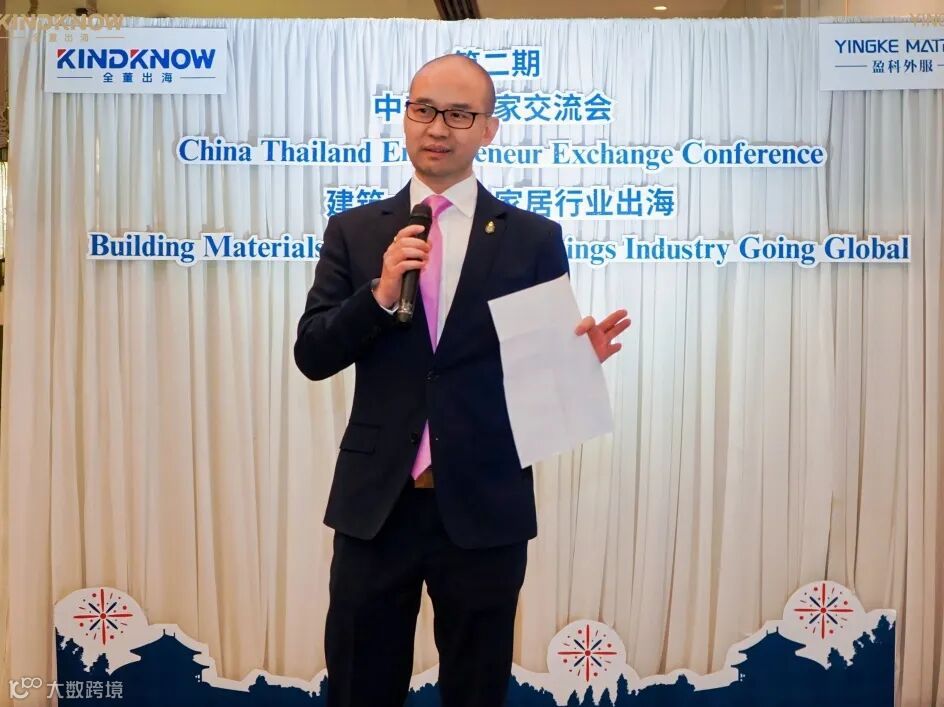 盈科外服(外贸)执行总裁赵国润先生主持开场,向远道而来的中泰嘉宾致以诚挚问候;盈科外服(泰国)董事长吴雨来先生在致辞中重点强调,中泰两国产业互补性强,在经济建筑、建材、家居等领域拥有广阔合作前景,呼吁双方企业家把握机遇、携手共赢。