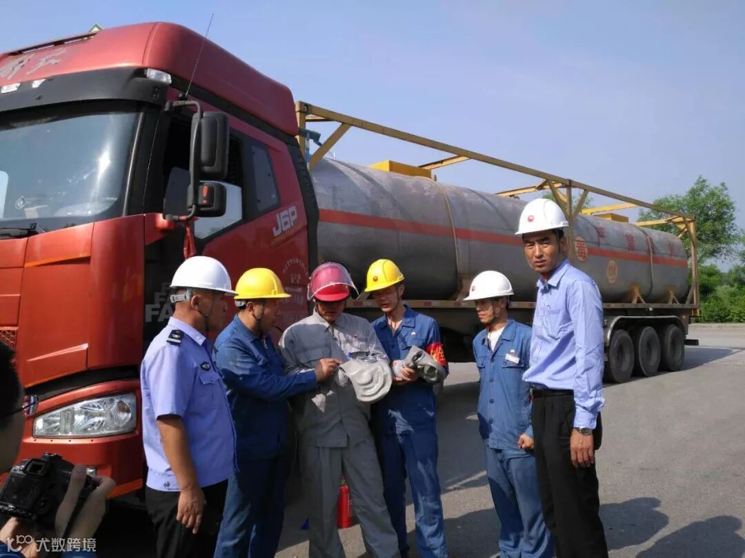 检查危化品车辆行车执照、入厂手续及防护设施。