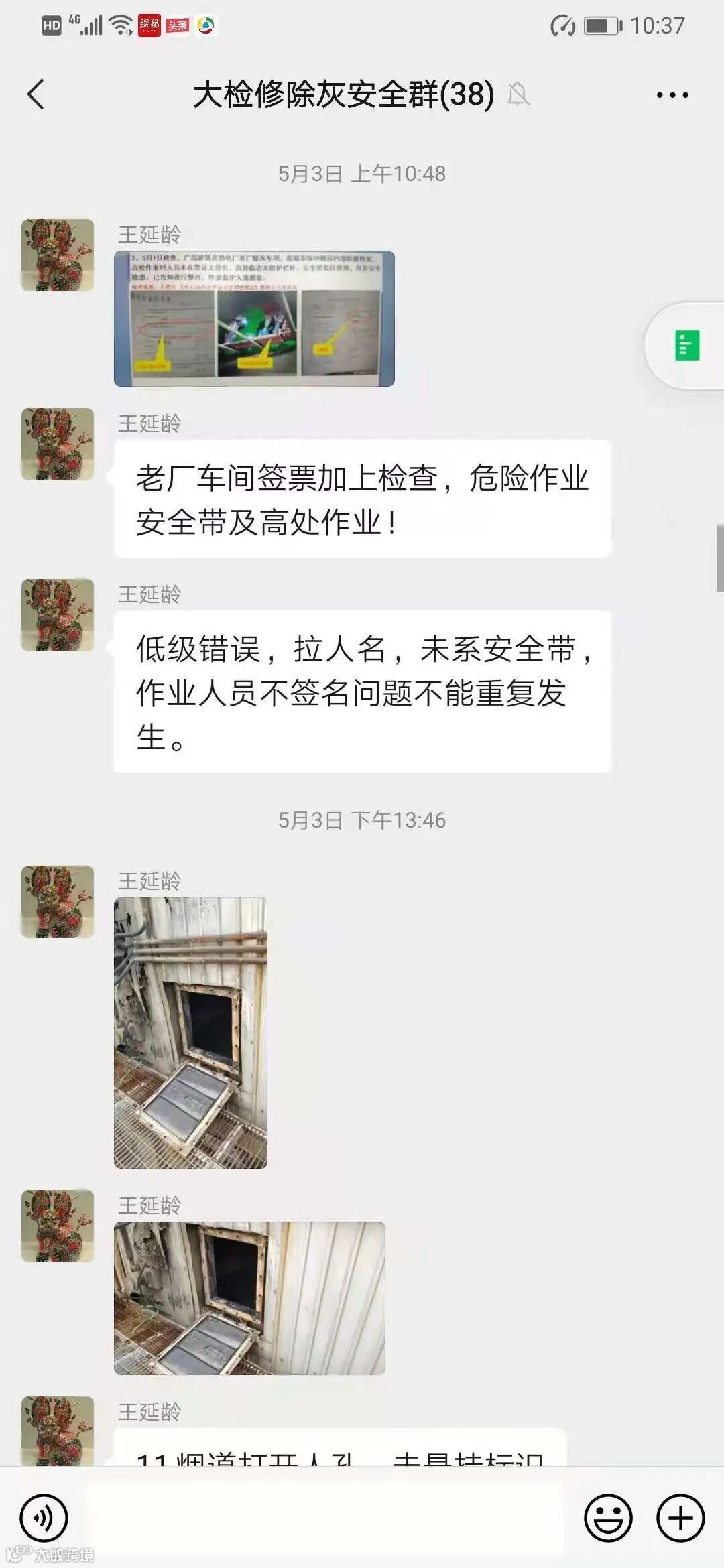 在“大检修除灰车间安全群”里